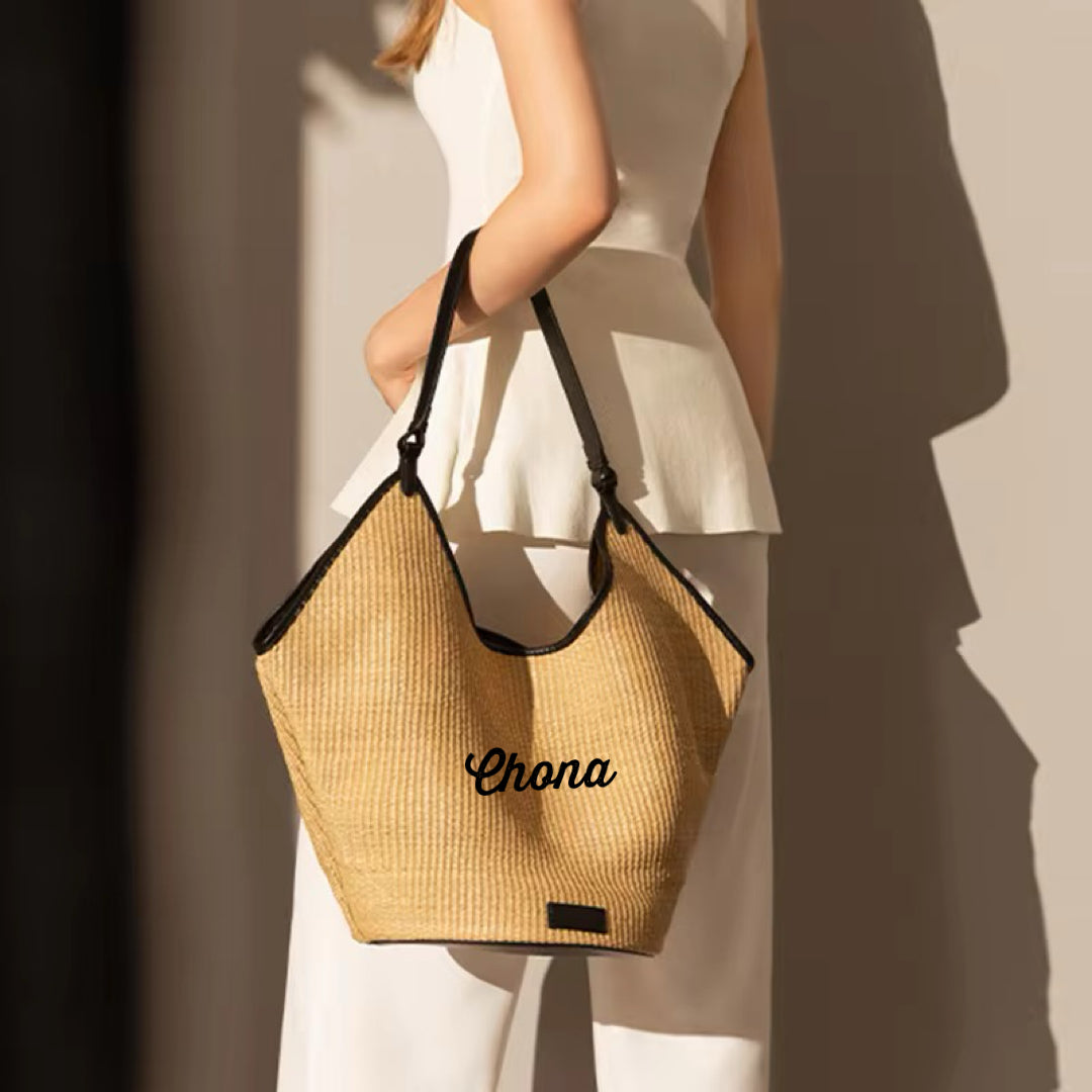 This Leather Woven Bucket Bag expertly combines spacious design with premium craftsmanship. Made from high-quality leather, it offers a large capacity to comfortably hold your essentials. Personalize it with your name embroidered prominently, adding a refined and unique touch. Ideal for those who appreciate both functionality and sophisticated style, this bag is a versatile accessory for everyday use.