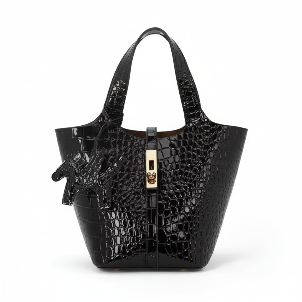 Croc Luxe handbag with crocodile embossed pattern on a white background
